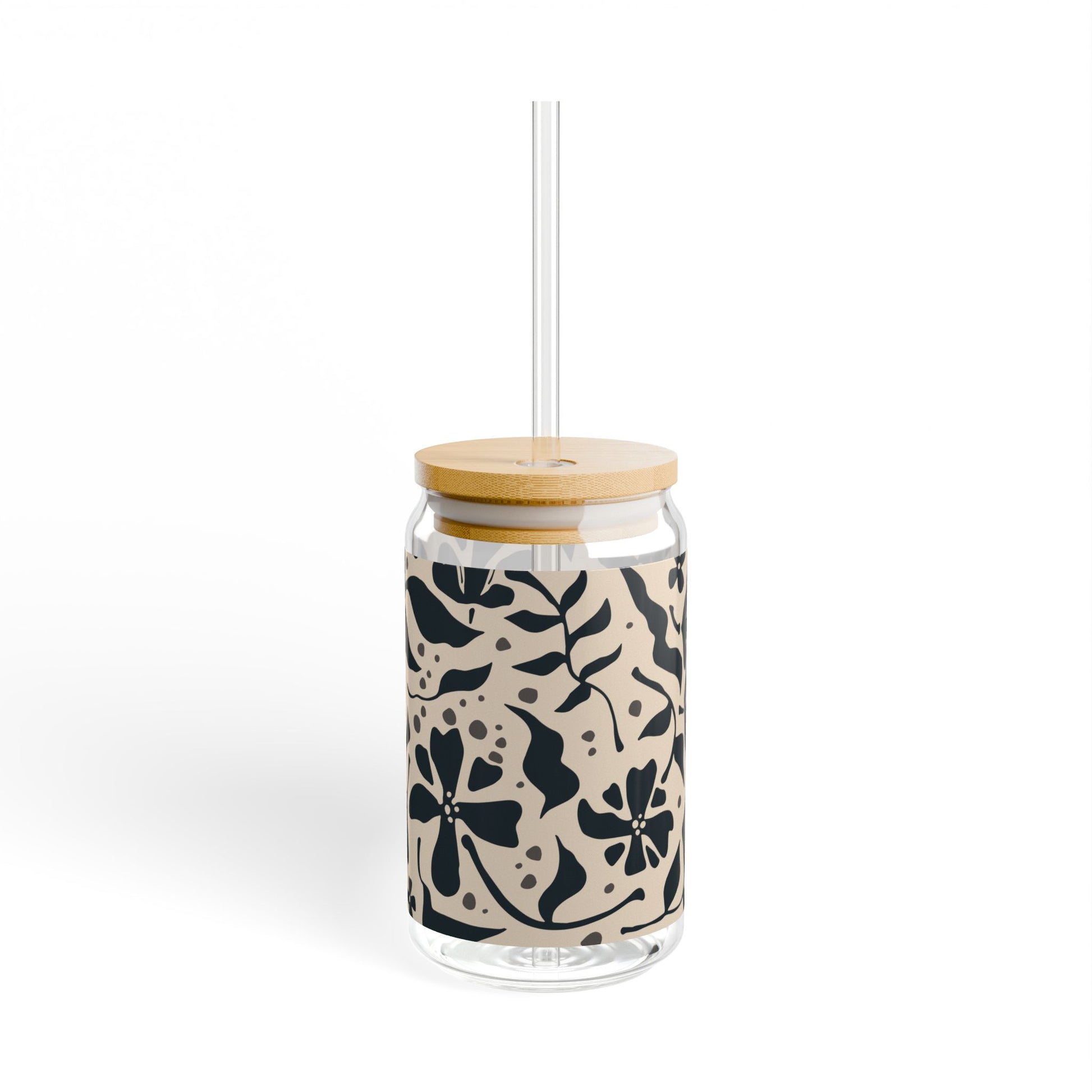 This 16oz sipper glass brings handcrafted charm to everyday drinks. The clear tempered glass body showcases a bold, nature-inspired pattern in crisp, vibrant colors that pop against the neutral background. Choose a smooth bamboo lid with a clear Tritan straw for spill-reducing convenience, or keep it simple without a lid. Lightweight yet sturdy, the glass feels good in hand and keeps your iced teas, lemonades, and cold brews visible and stylish on the table or at your desk. Printed in the USA using long-lasting inks, it’s BPA-free and designed to be cherished — just hand wash to preserve the finish.