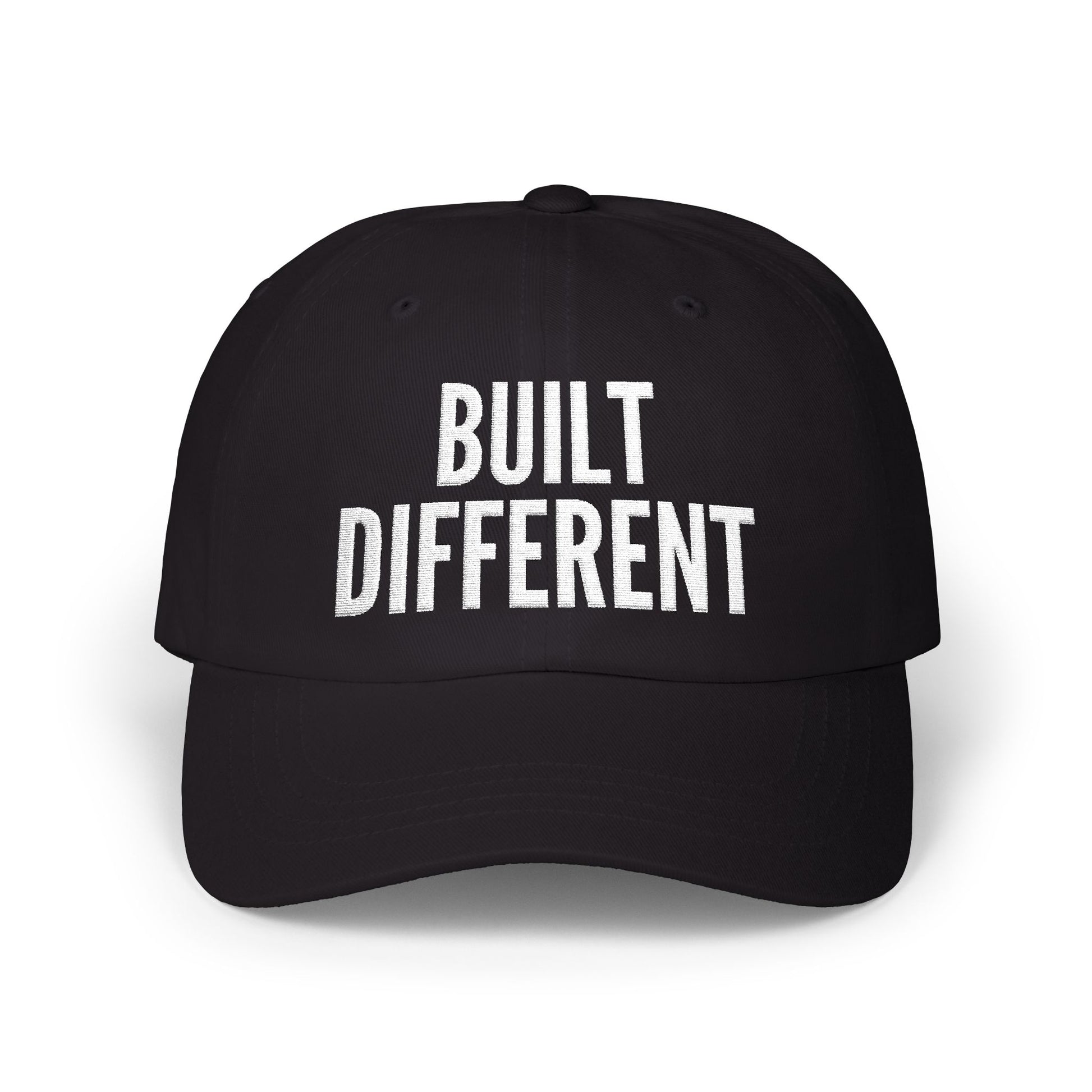 This classic dad cap blends everyday comfort with understated edge. Soft, unstructured cotton and a low-profile six-panel build make it feel worn-in from the first wear, while the precurved Permacurv® visor keeps sun and glare subdued. A bold, textured “BUILT DIFFERENT” front print adds confident attitude without shouting. The self-fabric hideaway strap with antique brass buckle lets you fine-tune the fit, and subtle details — sewn-in label and brand sticker on the visor — give it an authentic, lived-in finish. Wear it on slow mornings, road trips, or backyard projects when you want a reliable cap that says who you are without trying too hard.