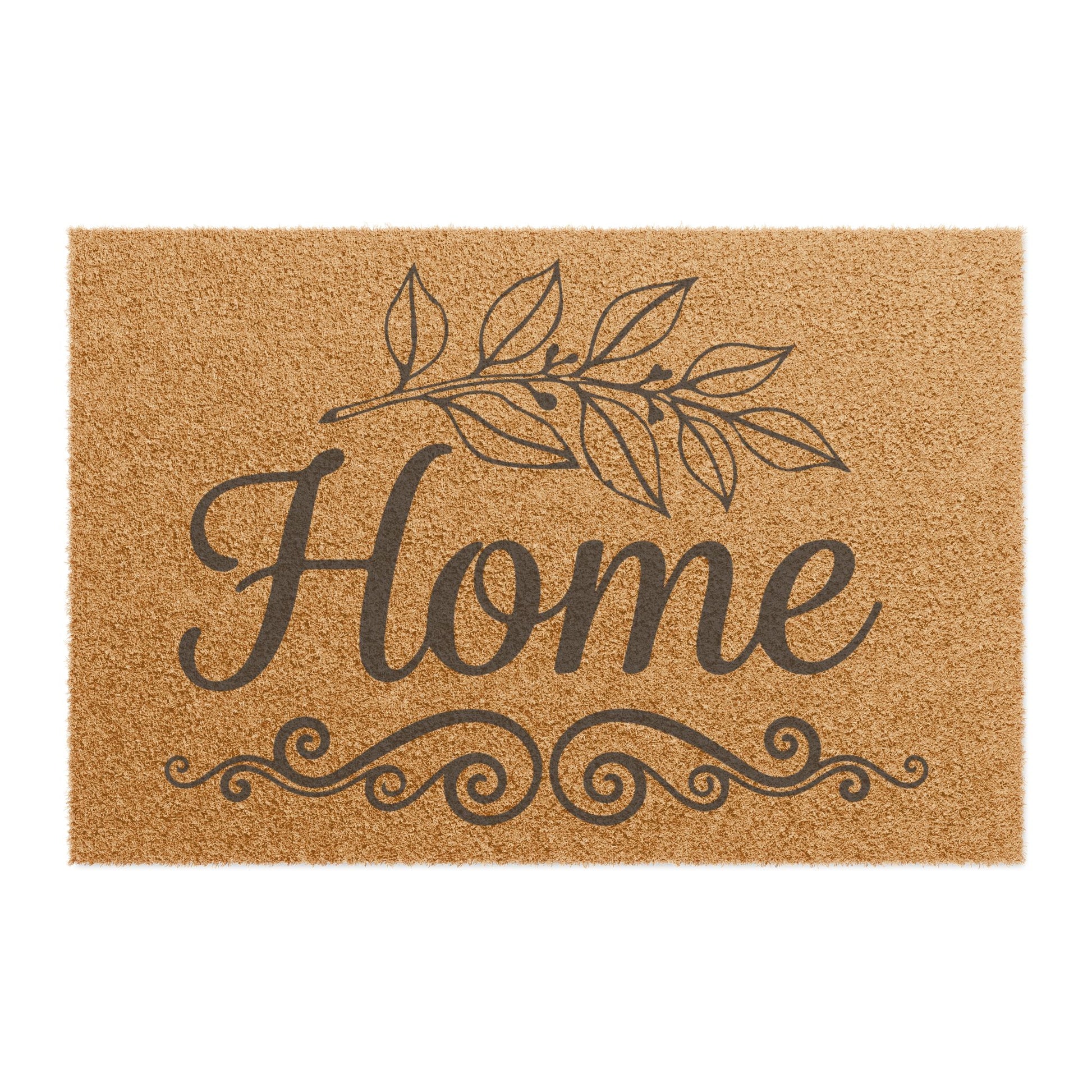 Welcome guests with a warm, grounded entry. This coir doormat reads “Home” in graceful script with a simple leafy motif and scrolling accent—an uncomplicated welcome that fits both cottage porches and modern stoops. The natural coconut fibers scrape shoes clean and dry quickly after rain. The low-profile black vinyl backing grips the threshold so the mat stays put while you come and go. Sturdy, breathable, and made for the outdoors, it settles into daily life and quietly sets the tone for the space beyond the door.
