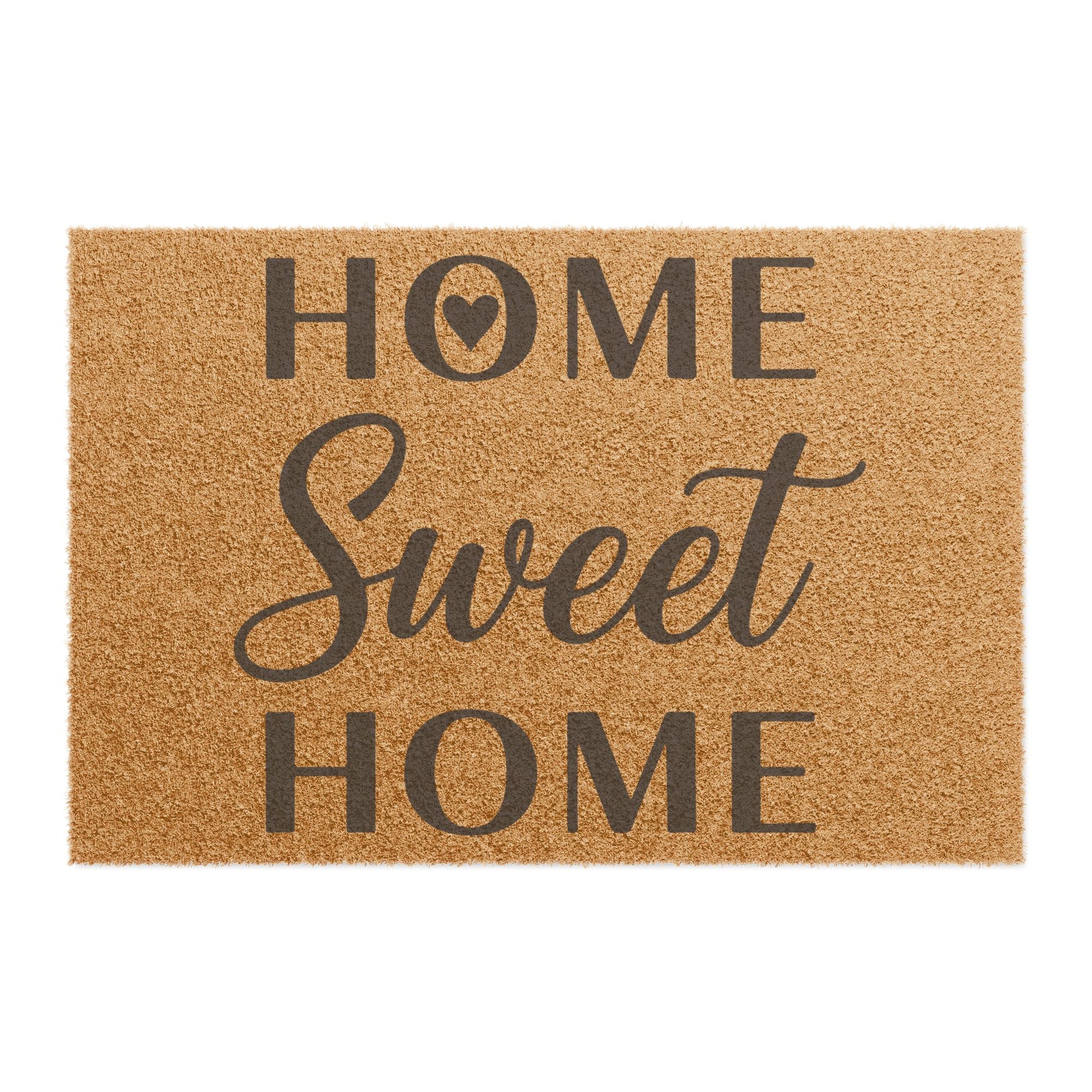 Woven from natural coir fibers, this welcome mat brings a warm, lived-in charm to your doorway. The neutral brown tones and simple “Home Sweet Home” lettering blend with porch potted plants, rustic wood finishes, or a tidy apartment entry. Sturdy, brushy fibers knock dirt from shoes while the textured vinyl backing keeps the mat anchored on stoops, concrete, or wood. Weather-tough and straightforward, it settles into daily comings and goings — greeting guests, quieting footsteps, and collecting the small traces of life that say this place is lived in and loved.