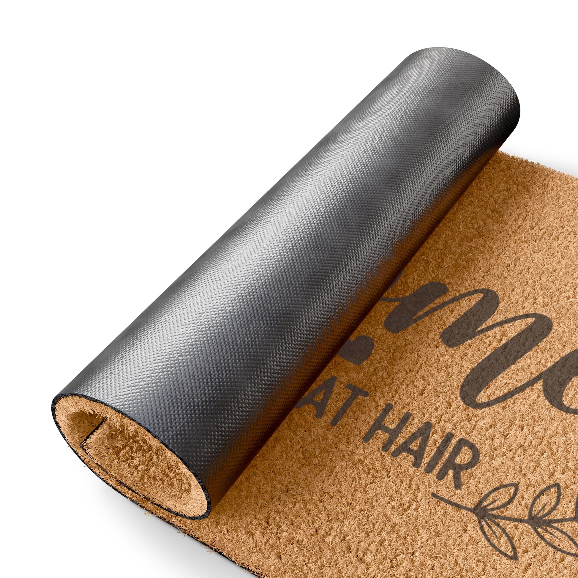 A sturdy coir doormat that greets guests with a playful, cat-loving message. The natural coconut fibers give it a warm, rustic look while heavy-duty tufting scrubs shoes clean. The black vinyl backing grips porches and entryways so the mat stays put through foot traffic and light weather. It settles into everyday life at the threshold—catching dirt, shedding a little personality, and making visitors smile the moment they arrive.